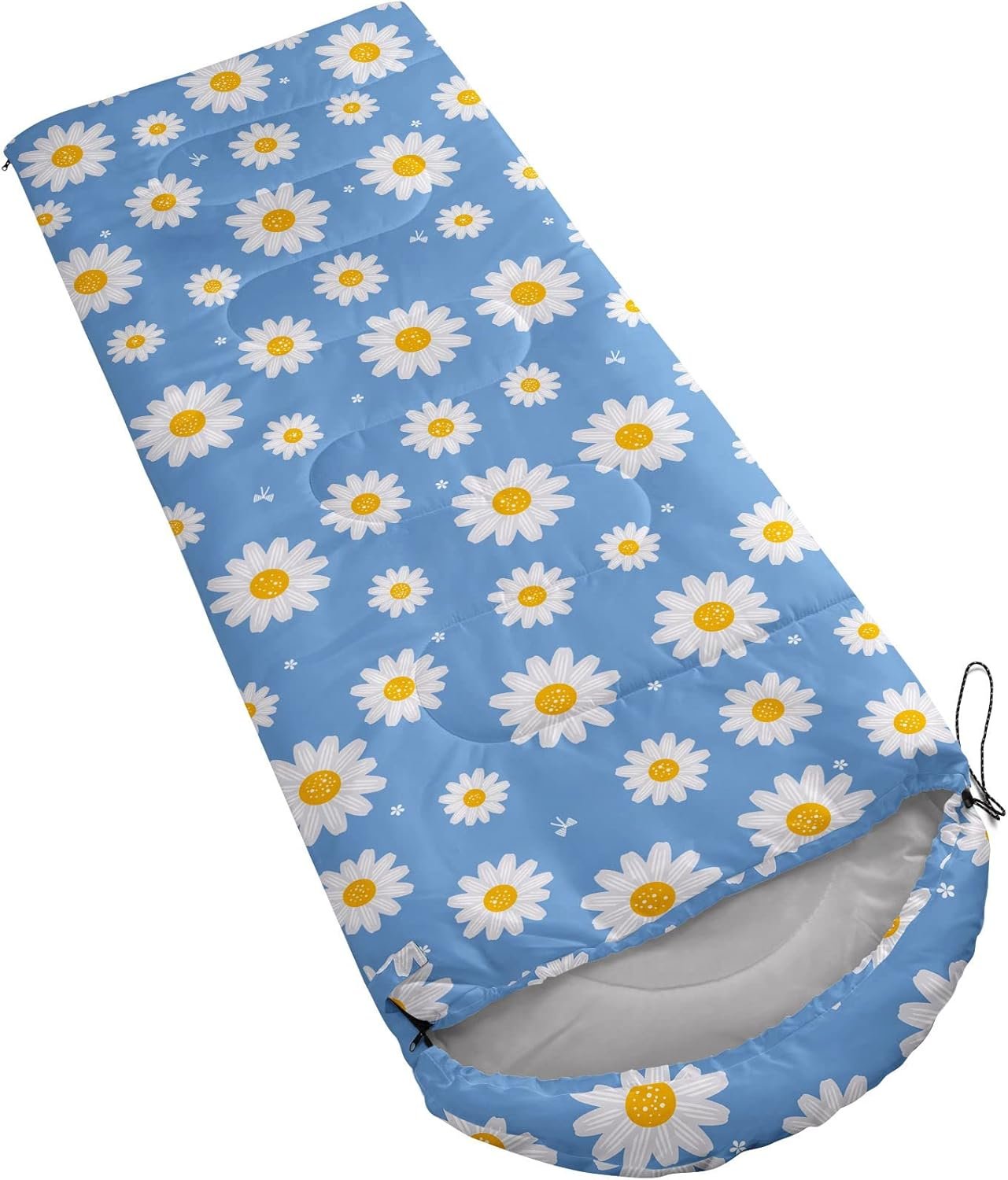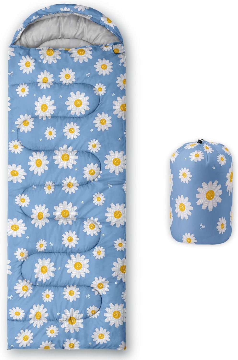 • SUITABLE:The sleeping bag can be used for 3 Seasons.SIZE:80*230cm Suggenal extreme temperature: 41 ℉ -77 ℉.Applicable in a variety of scenarios,such as Travel camping pajamas party,It’s very suitable for you to travel with your children.Half-circle hood with adjustable drawstring,which can keep you warm and prevent your humidity